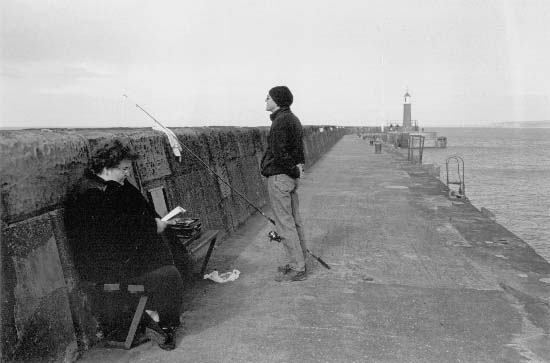 We all learned to be more patient, and make initially unpromising settings work for us. Using a 35mm camera, unlike a larger format camera, it is easy to move on quickly before a scene has revealed its possibilities and then look back and see you should have waited. In a place like Watchet not a lot is going on - but that doesn't mean nothing is, and we just had to work harder at finding images. I also tried approaching people more straightforwardly as if they had a right to know what I was doing but as if I didn't expect them to refuse. I only got one refusal. Back in London I now find people are more likely to say yes. |