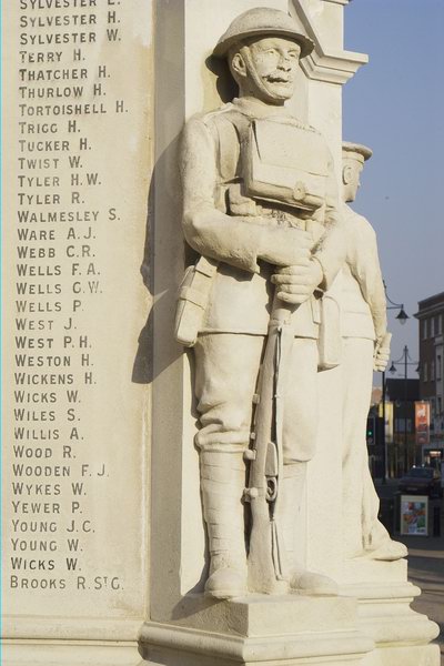 ![]() War Memorial, moved moved a few yards into former Market Square, Staines |