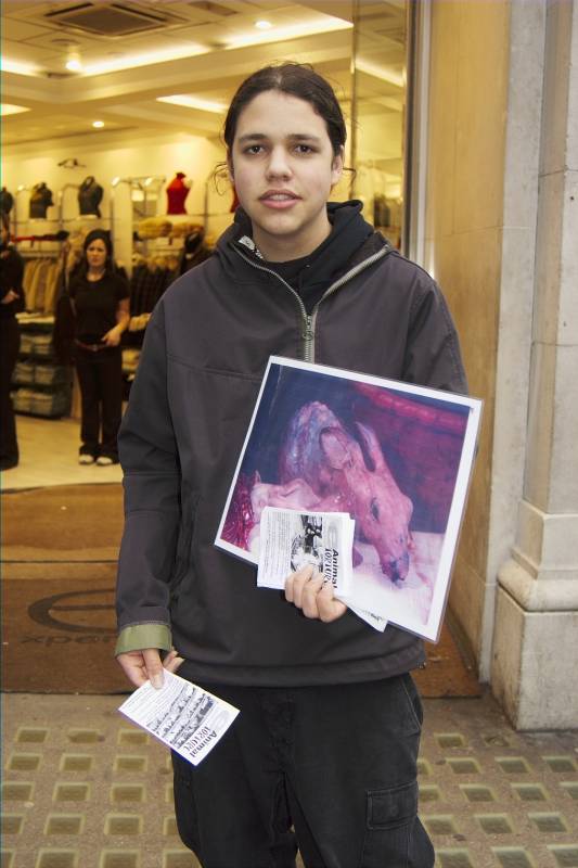 There were a number of protests against shops in the West End both by animal rights protestors and also 'No Sweat', calling for better conditions for the workers who make clothes, trainers and other fashion accessories in lousy conditions for a few cents an hour. Unfortunately I wasn't able to photograph much of this.