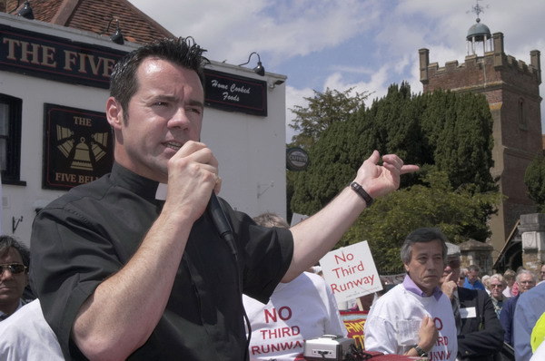 No Third Runway at Heathrow. Parish Priest at Harmondsworth protest meeting.