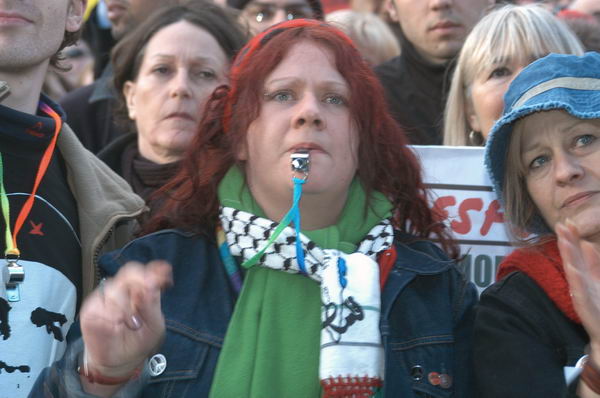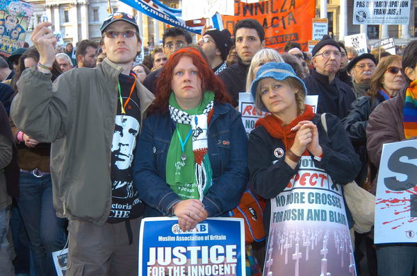 European Social Forum: Troops Out of Iraq March and RallyLondon, 17 Oct, 2004Most of the crowd could not see what was happening and continued listening to the speeches |