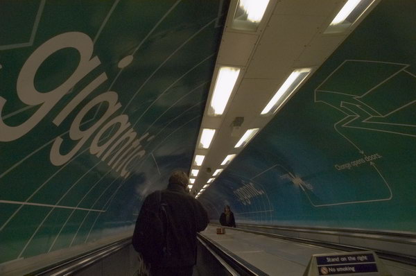 Moving Walkway down to the Waterloo and City Line (the Drain), Bank, London. |