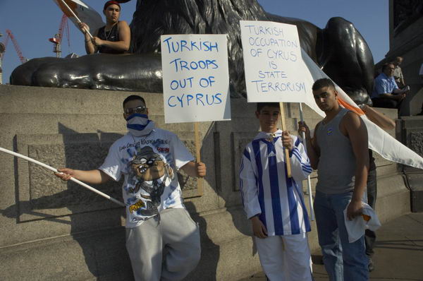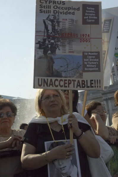Divided CyprusGreek Cypriots protest in Trafalgar Square, London. 16 July 2005