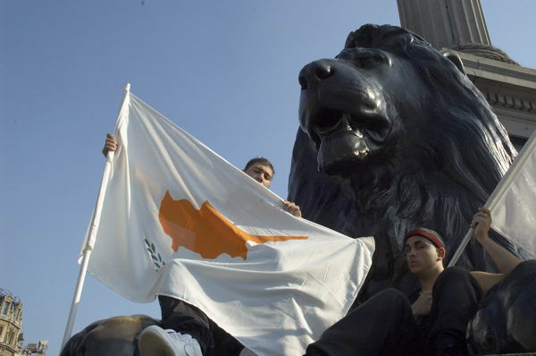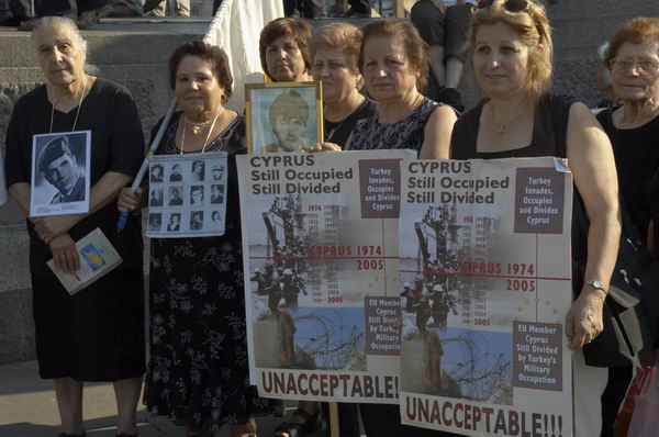 Divided CyprusGreek Cypriots protest in Trafalgar Square, London. 16 July 2005