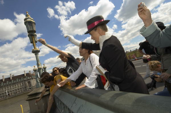 with tea bags at the centre of Westminster Bridge Just tea bags