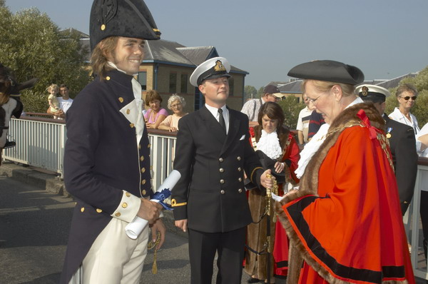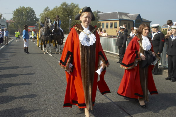 ![]() Lapontiere is greeted by Runnymede mayor, Councillor Frances Barden on Staines Bridge. |