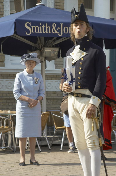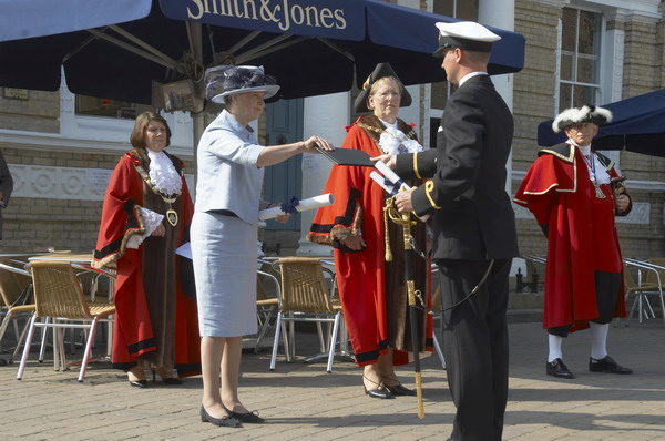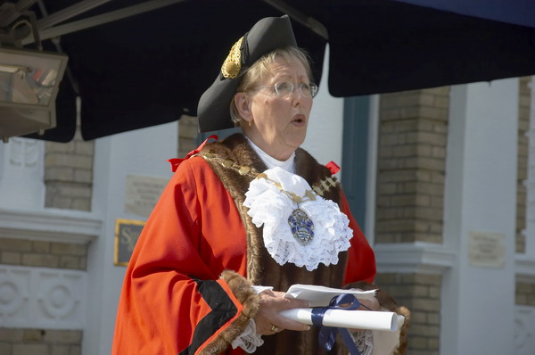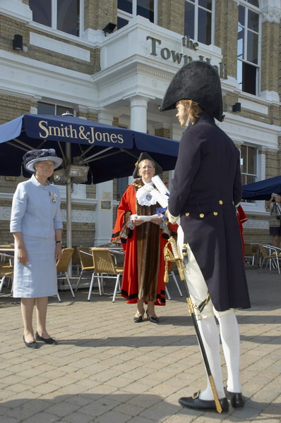 ![]() Spelthorne Mayor, Councvillor Mrs Patricia Weston with a copy of the Trafalgar Dispatch ![]() |