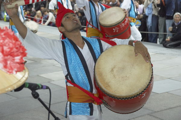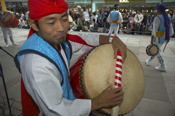 ![]() One of the musicians had a rather fine hat ![]() The drummers were also brightly dressed ![]() And really banging the drums as hard as they could |