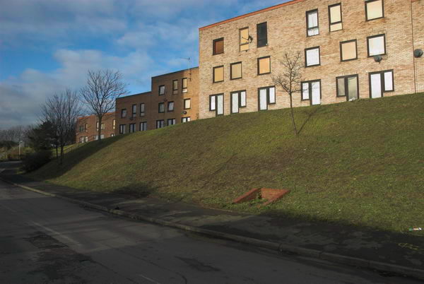 Clays Lane, with Park Village estate to the right, already cleared of residents and empty and unused although not required for 2 years. |