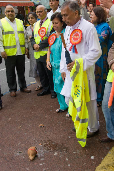![]() The coconut was thrown onto the road to start the parade |