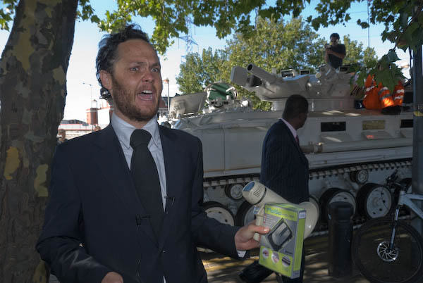 Space Hijackers Auction Tank at Arms FairExCeL West Entrance, Victoria Dock, London. Tues 11 Sept, 2007
