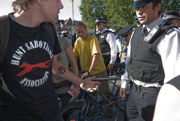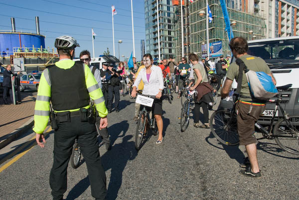 ![]() Police cyclists take over and block the road |