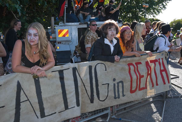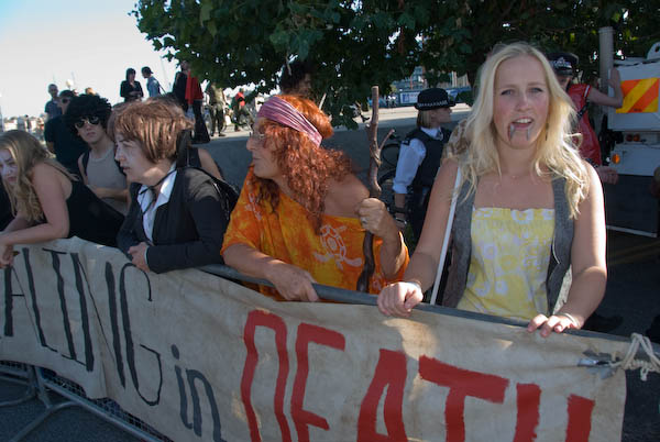 Some of those in the cars going past got out digital cameras to photograph these protestors |