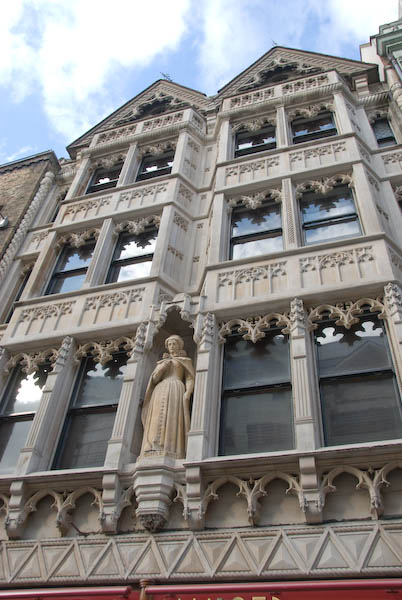 ![]() This woman holding a train is on Brittania House, offices of the London Dover & Chatham Railway in Old Bailey. |