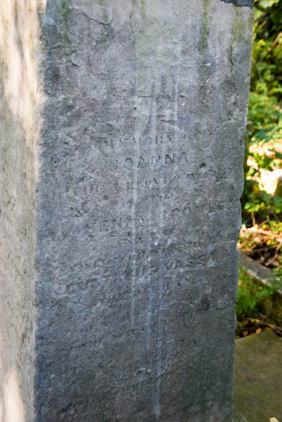 ![]() Joanna Vassa's gravestone, re-discovered in 2005. Inscriptions for Joanna (left) and her husband, Henry Bromley. |