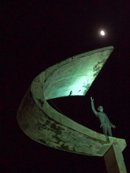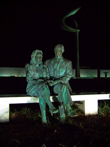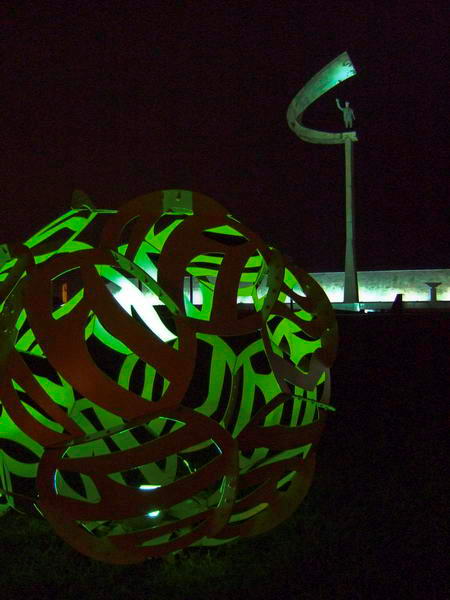 ![]() Odd ball and Juscelino Kubitschek memorial with him and a sickle (no hammer.) Right: Juscelino Kubitschek and his wife Sarah on a bench outside |