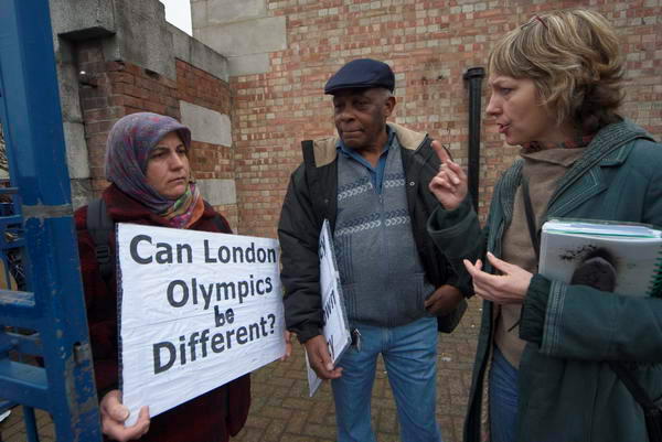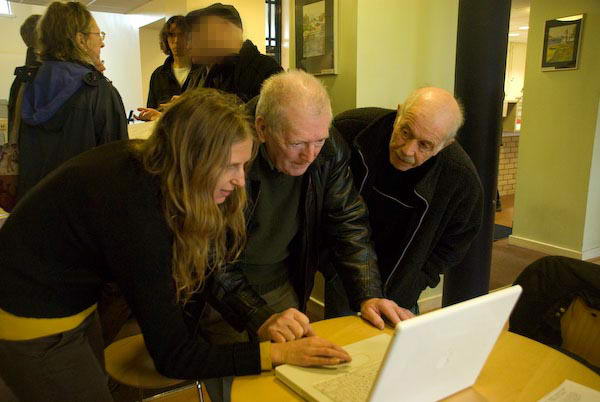 ![]() Manor Gardens Allotment holders look at the 'Life Island' web site making the case for a green Olympics, Hackney Wick, London, March 2007. |