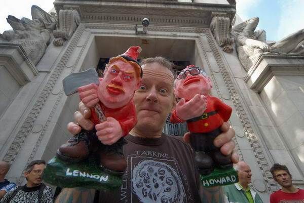 ![]() 'Howard' and 'Lennon' at Australia House in protest against a pulp mill in Tasmania, London, October 2007. |
