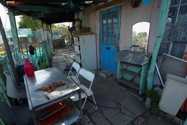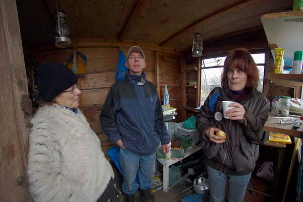 ![]() Gardeners take a break at Manor Gardens Allotments. Hackney Wick, London, March 2007. |