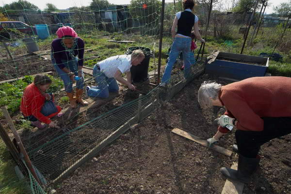 ![]() Sowing for the final harvest. A legal challenge allowed the holders a few extra months on site and they were able to grow and harvest some crops this year. Hackney Wick, London, April 2007. |