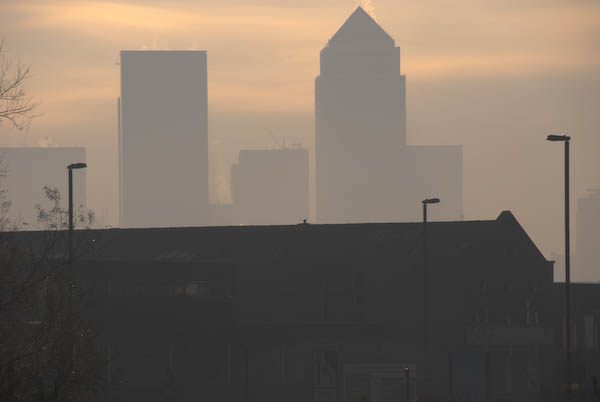 ![]() Canary Wharf through distant mist |