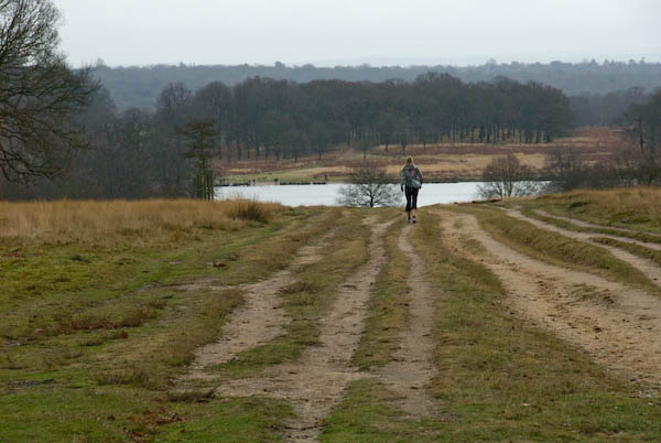 ![]() A walkern strides out towards Pen Ponds |