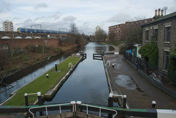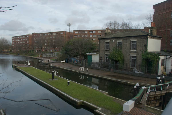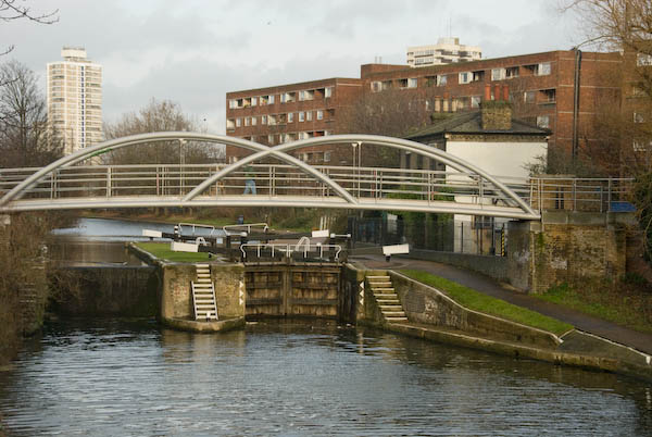 ![]() Regents Canal, Lock and new Parnham Street bridge |