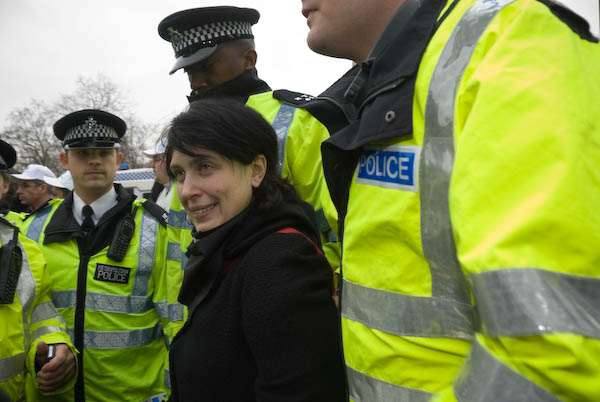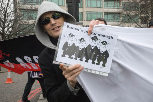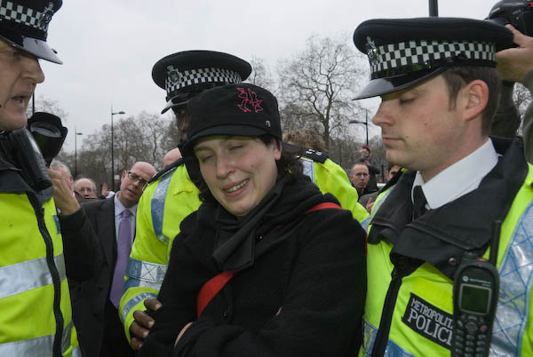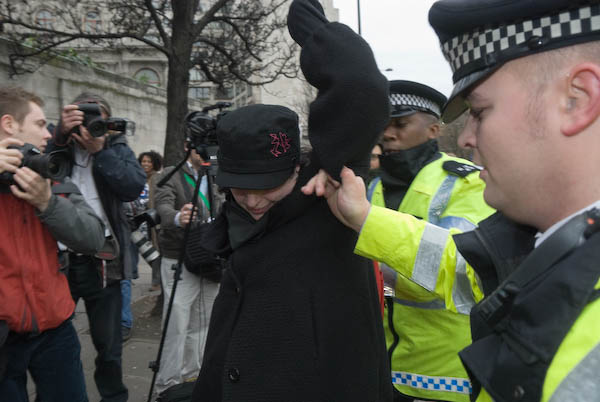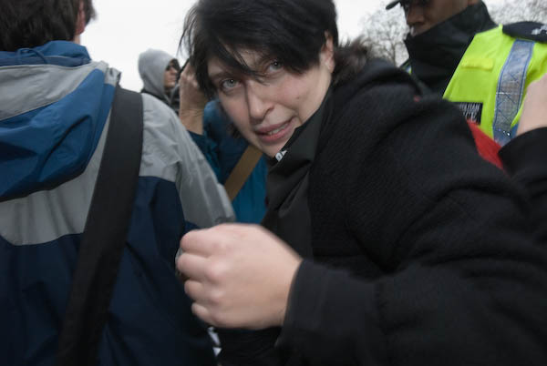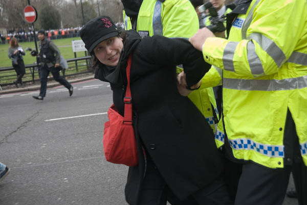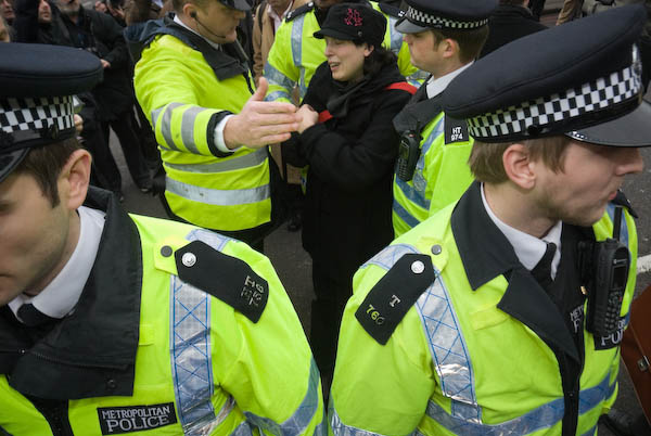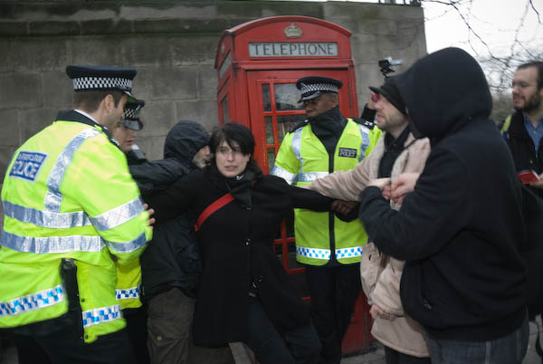![]() Police chase the FITwatch demonstrators down a side street. |