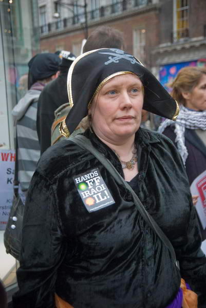 Hands off Iraqi Oil Piratical Action TourBond St-Shell Centre, London. Saturday 23 Feb, 2008