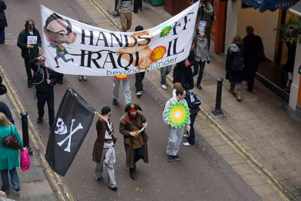 Hands off Iraqi Oil Piratical Action TourBond St-Shell Centre, London. Saturday 23 Feb, 2008