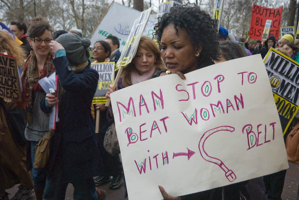I arrived just in time for the start of the march promptly at 1pm when several thousand women (my estimate was 2,500) made their way out of Hyde Park and onto Park Lane. Dedicated to the dignity of women across the world, the main banner at its head read ‘Million Women Rise – together we can end violence against women….