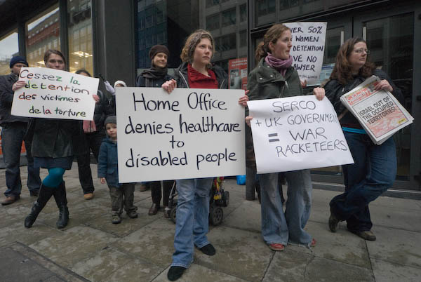 SERCO may be a name that most people would not recognise, though increasingly around the world it is running their lives. Around the world, governments are turning to SERCO to run what used to be public services - hospitals, prisons, schools and even military services. In the UK, if you go to prison it may be run by SERCO, and you will be taken there in a SERCO van. They own and run Yarl's Wood Immigration Removal Centre, where around 400 women and children seeking asylum are imprisoned.