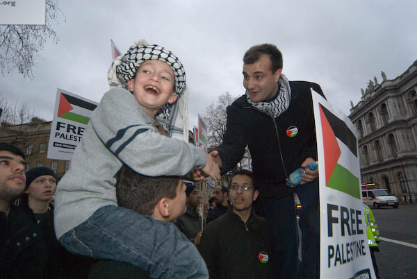 Palestine Return Centre called for an emergency demonstration opposite