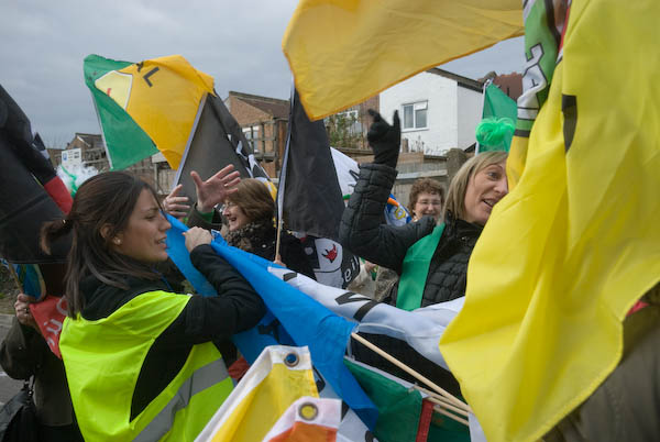 While the police had put on such a splendid turn-out, demonstrators had clearly decided to stay at home, or at least to celebrate St David's Day elsewhere, with only a small group of perhaps 50 turning up to the square, where they were heavily outnumbered by police.