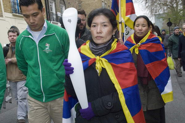 ![]() The torch was handed to Ngawang Sangdrol , one of the Drapchi nuns |