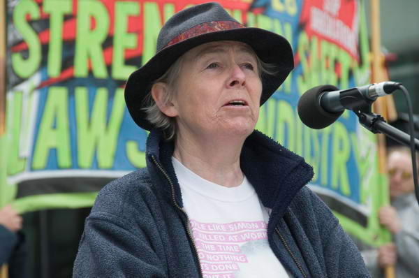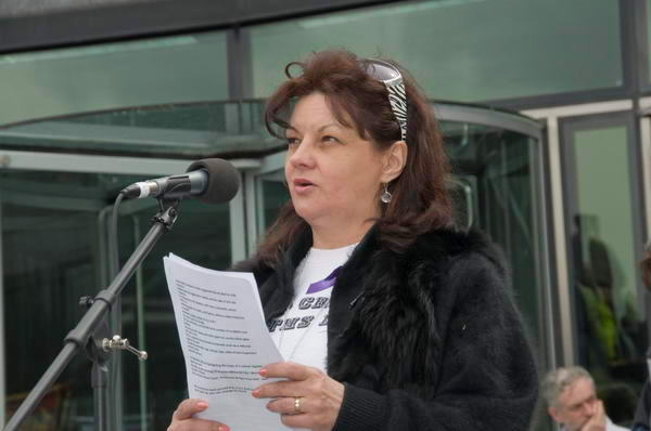 ![]() Liliana Alexa, secretary of the Battersea Crane Disaster Action Group (BCDAG) and mother of Michael Alexa, killed when a crane collapsed on him in 2006 while he was working on his car next to a building site. The crane driver was also killed. |