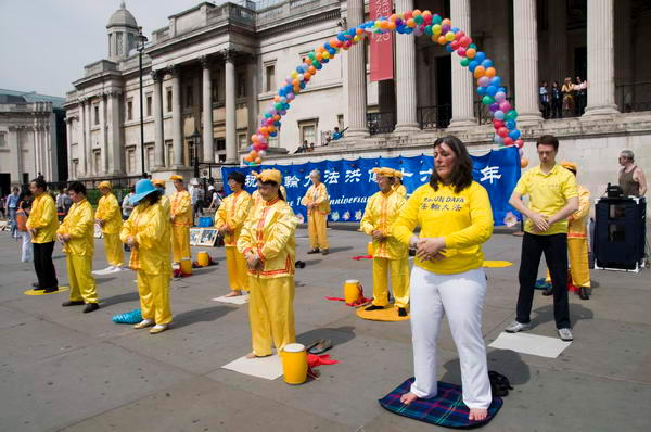 At the end of the rally, the final speaker, Kumi Naidoo of the Global Call to Action Against Poverty, accompanied by the Dhol Blasters, Birmingham's world-acclaimed Punjabi musicians and dancers, led the crowd out into the square, where the music continued while an attempt was made to form and photograph the world's largest human pie chart.