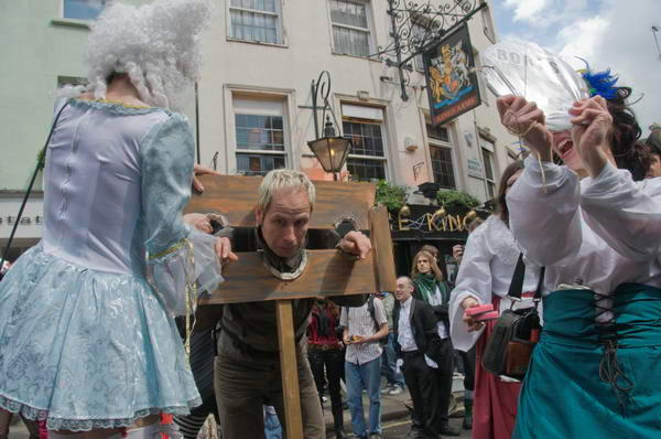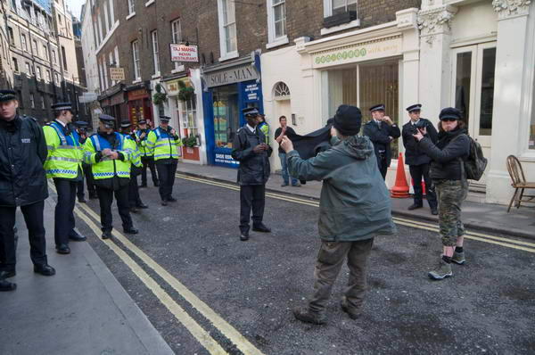 ![]() Police kept the traffic at bay, but although many were obviously amused, they held back and didn't join in |