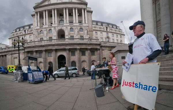 ![]() at Bank, in the centre of the financial powerhouse of the world, the CIty of London, organised by church-based group Justshare |