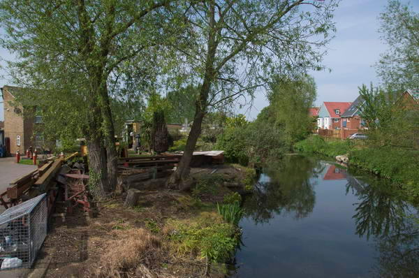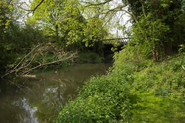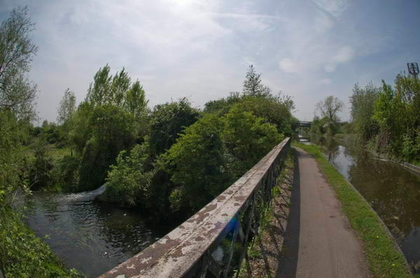 ![]() The aqueduct over the Colne Brook, with canal water running down into the river at left of picture |