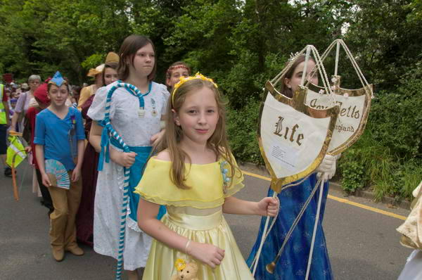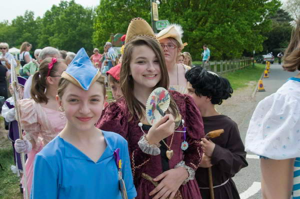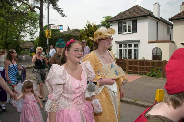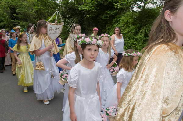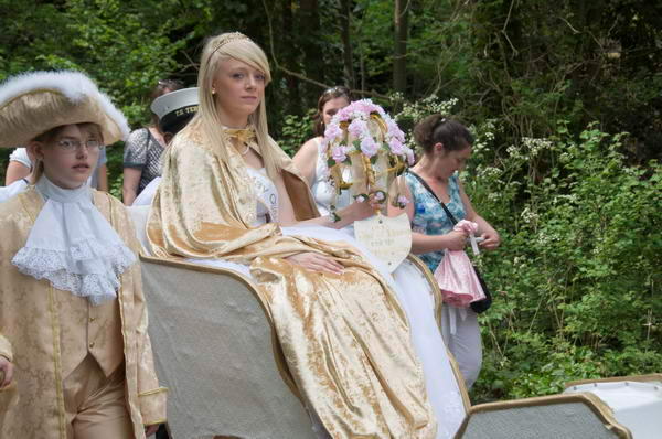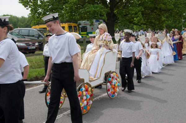 ![]() The Prince of Merrie England walks beside the May Queen in her carriage |
