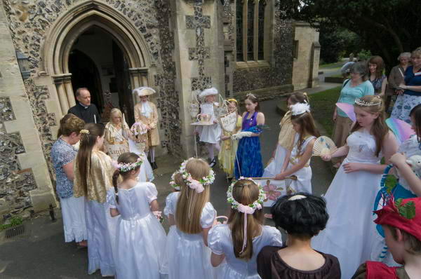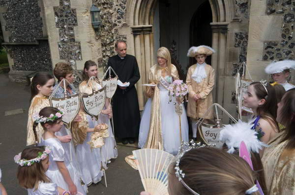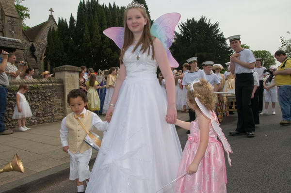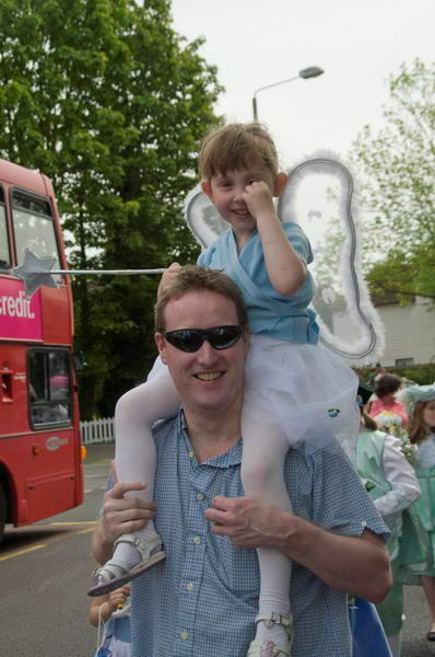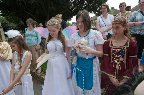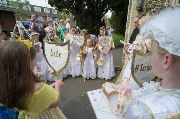 ![]() The London May Queen join on the end of the procession which has gone on past the church |
