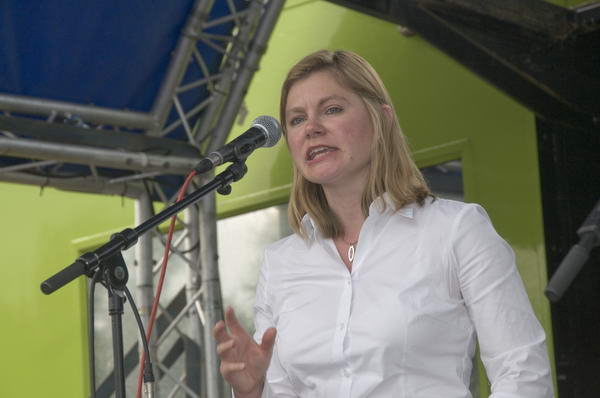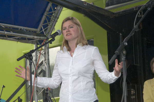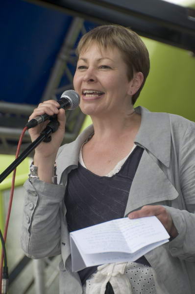 ![]() from noise and pollution around Heathrow. Right: Caroline Lucas, MEP, who came from Brussels to speak at Sipson |