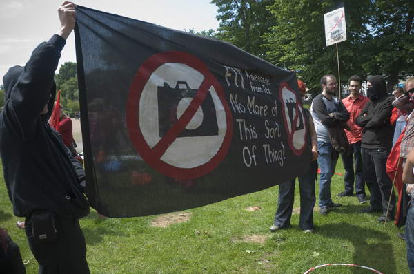 Fitwatch, protesting against the intimidatory use of photography by the police (its use against yobs was recently applauded by Jacqui Smith
