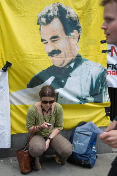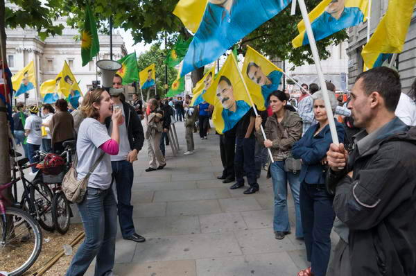 ![]() Kurds with Ocalan on their flags |