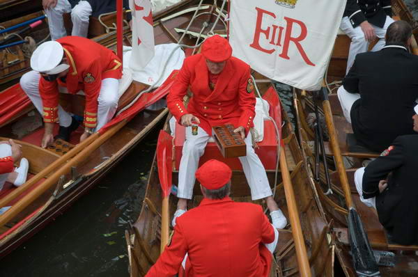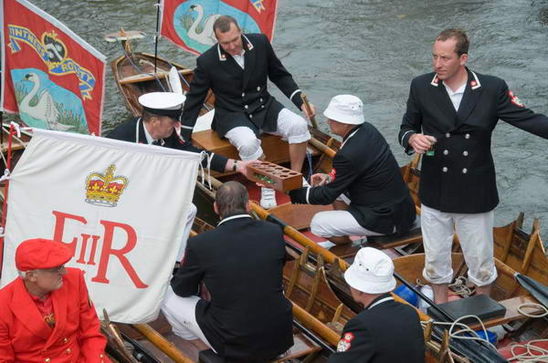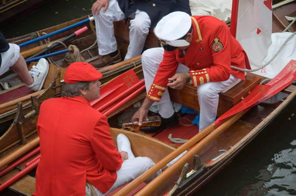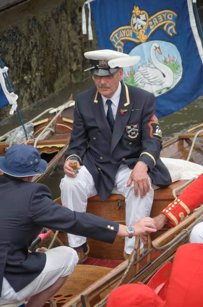 ![]() The Queen's Swan Marker, David Barber, pours out the whisky into the glasses, then added rather a large amount of water |