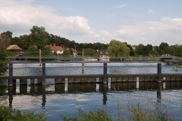 ![]() At Hambledon Lock you can walk across the river, but the Thames Path stays on the south bank. |