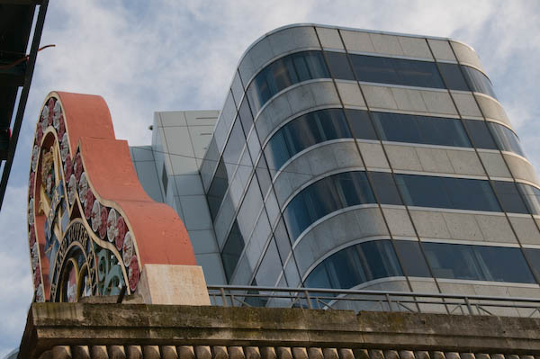 ![]() The area on top of the pier at left is linked to the newspaper offices by a bridge |