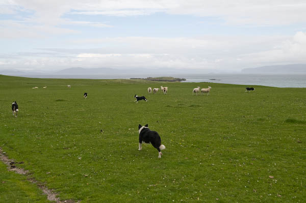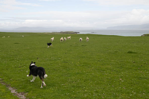 ![]() Dogs round up sheep at Ardionra at the north of Iona |