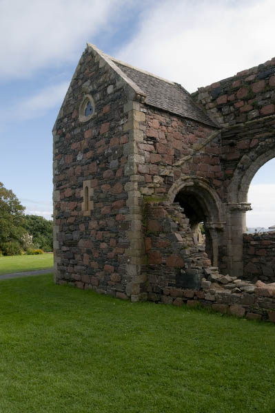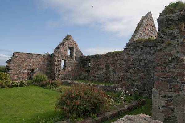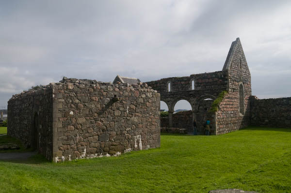 ![]() The Iona Nunnery was left in ruins when the Abbey was restored, possibly becasue there was less remaining ![]() St Ronan Church in the Nunnery grounds at left of picture is used as a store for masonery |